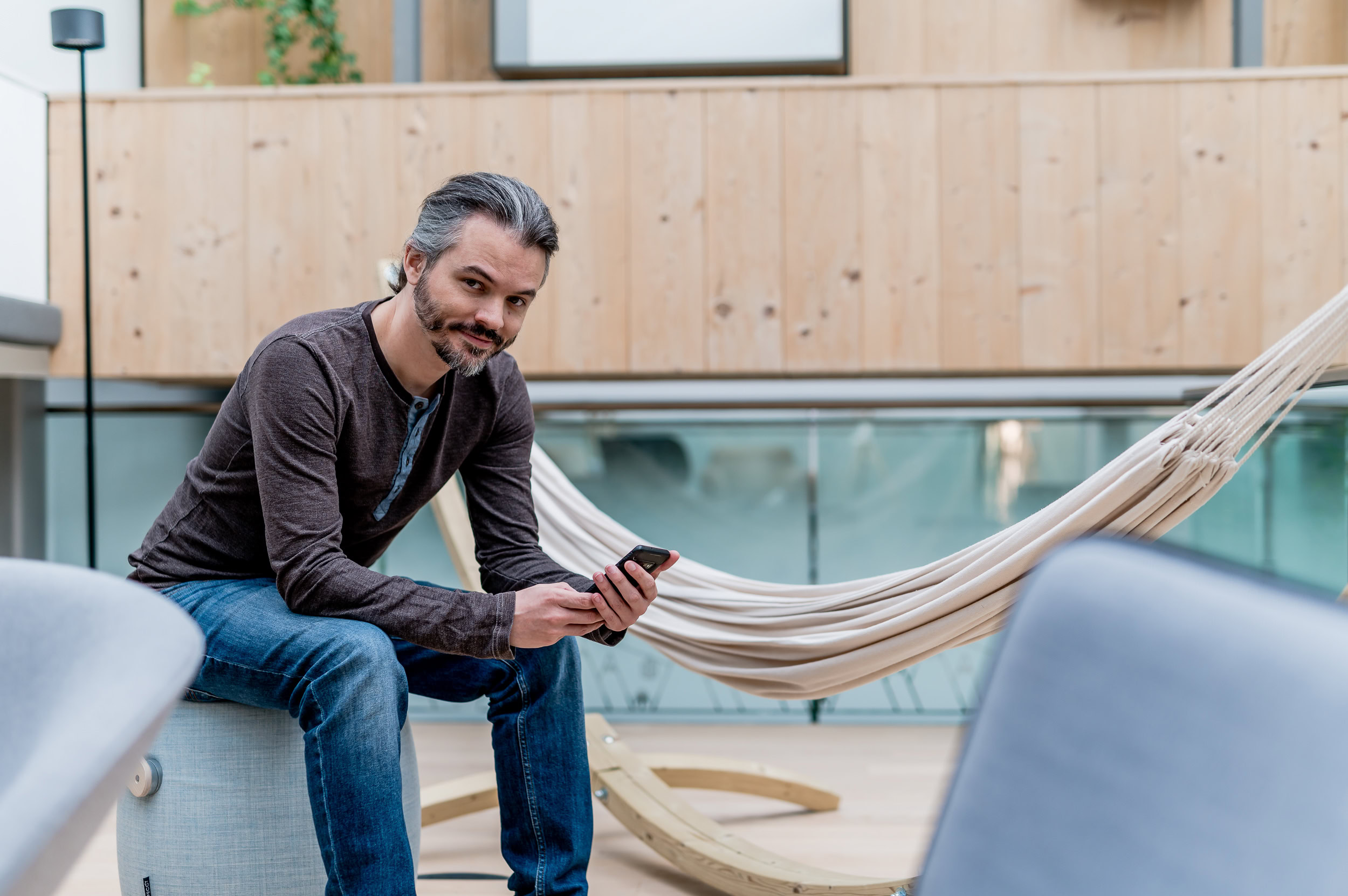 Gemeinsam mit dem Team habe ich verschiedene Bereiche des Büros genutzt: Tageslicht, Glasflächen, grüne Wände, entspannte Arbeitssituationen.